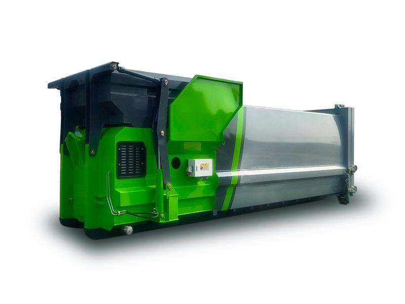 翻斗型移動式垃圾壓縮站由壓縮腔,裝載箱體、后門、翻轉斗、液壓系統和電氣系統等組成。適應城市、鄉鎮區域垃圾轉運站點垃圾量集中的情況下使用,適用的前端收集工具有:中小型收集車、電動三輪車等。