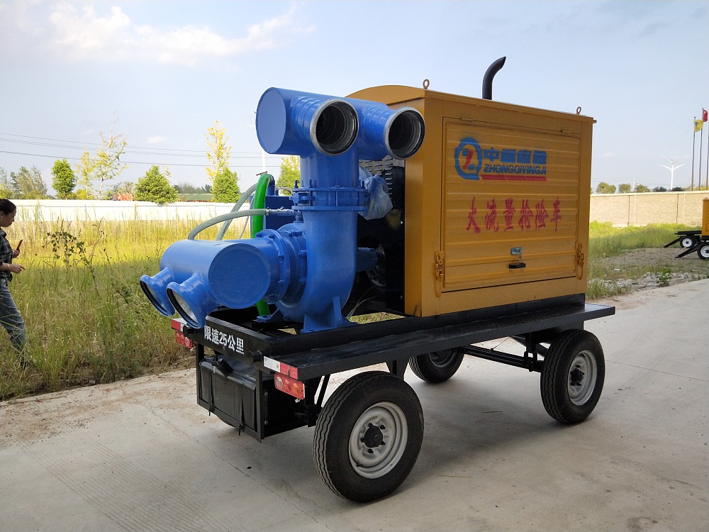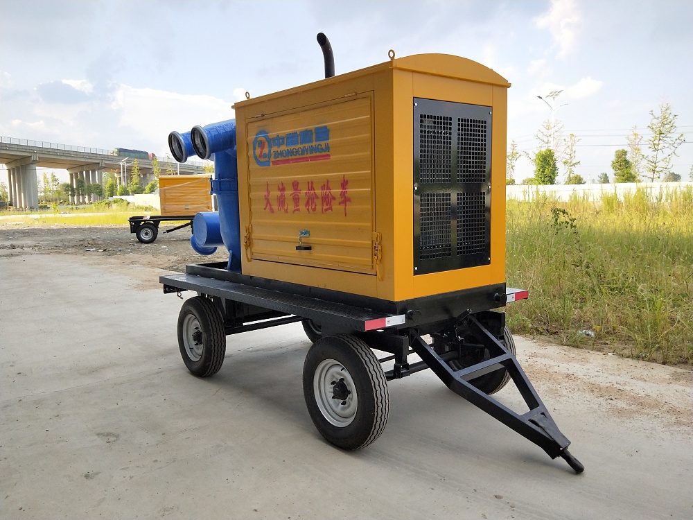 大流量節能拖掛式防洪搶險泵車使用柴油機帶動自吸泵:該泵組集自吸和無堵塞排污于一體,采用柴油機驅動軸向回流外混式,并通過泵體、葉輪流道的設計,使用時不需要安裝底閥和灌引水。泵組可吸排含有大顆粒固體和長纖維雜質液體,可廣泛適用于市政排污及防澇工程、農業灌溉等。該泵組具有結構簡單、自吸性能好、排污能力強、節能、使用維修方便、一體式戶外型可移動設計等特點。